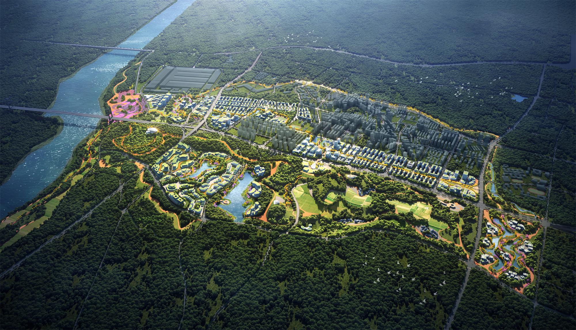The project is located in the riverside area on the southeast side of Jiulongpo Area of Chongqing Hub Port Industrial Park, which is the gateway area of Chongqing Hub Port Industrial Park. Under the strategic opportunity of vigorously constructing Chongqing Hub Port Industrial Park, Chengdu-Chongqing Economic Circle and Western Science City, the municipal party committee and municipal government have high requirements for the future functions and overall image of the area. The area has the advantages of urban and rural production and scenery intersection, obvious location advantages, superior landscape resources, and abundant development factors, but also faces the problems of fragmented functional layout, poor style and form, broken ecological texture, and insufficient urban energy level.
